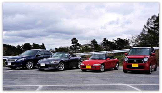 帰省された際、ご家族で所有する4台のHonda車を仲良く並べて記念撮影されたkimukiさん。そこに並ぶのはスポーティーな上級セダンのインスパイア、Honda車では数少ないFRオープンスポーツのS2000、軽いフットワークでNSX譲りのミッドシップの走りが人気のビート、そして、発売されて間もない、お買い物から走りまでマルチにこなすN-ONE。一瞬ディーラーと勘違いしてしまいそうな充実ぶりにびっくりしてしましました!ご家族で4台ものHonda車をご愛用頂き、事務局としても大変嬉しい限りです!これからもHonda車と長くお付き合い頂けると大変嬉しく思います。kimukiさんのご投稿を6月のベストショット賞とさせて頂きます。受賞おめでとうございました!